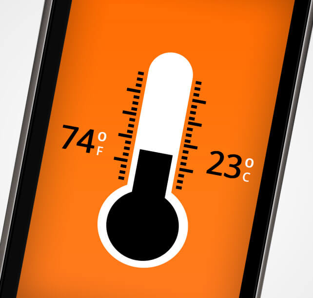 Show the TEMPERATURE icon and then the next screen giving the Fahrenheit and Celsius read out of the temp (74 Fahrenheit and 23 Celsius)"